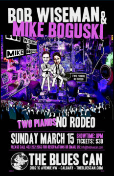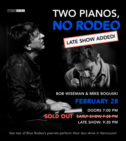 | March 2 | Duncan, BC | Duncan Showroom | Two Pianos no Rodeo | https://do250.com/events/2026/3/2/2-pianos-no-rodeo-bob-wiseman-mike-bogusk-tickets |