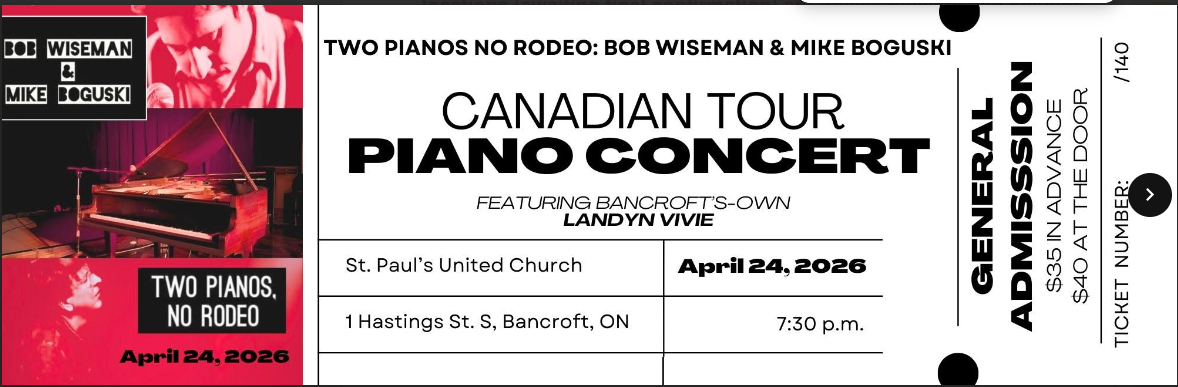 | April 24 | Bancroft, ON | St. Paul’s Church | Two Pianos no Rodeo | |